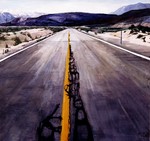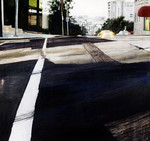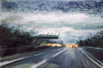 'Highways', schilderijen, 2003. (Stads-) landschappen die voor meer dan de helft uit asfalt bestaan. Bij een landschap verwacht je natuur, ik schilder de weg waarover je je verpaatst om in het landschap te komen.